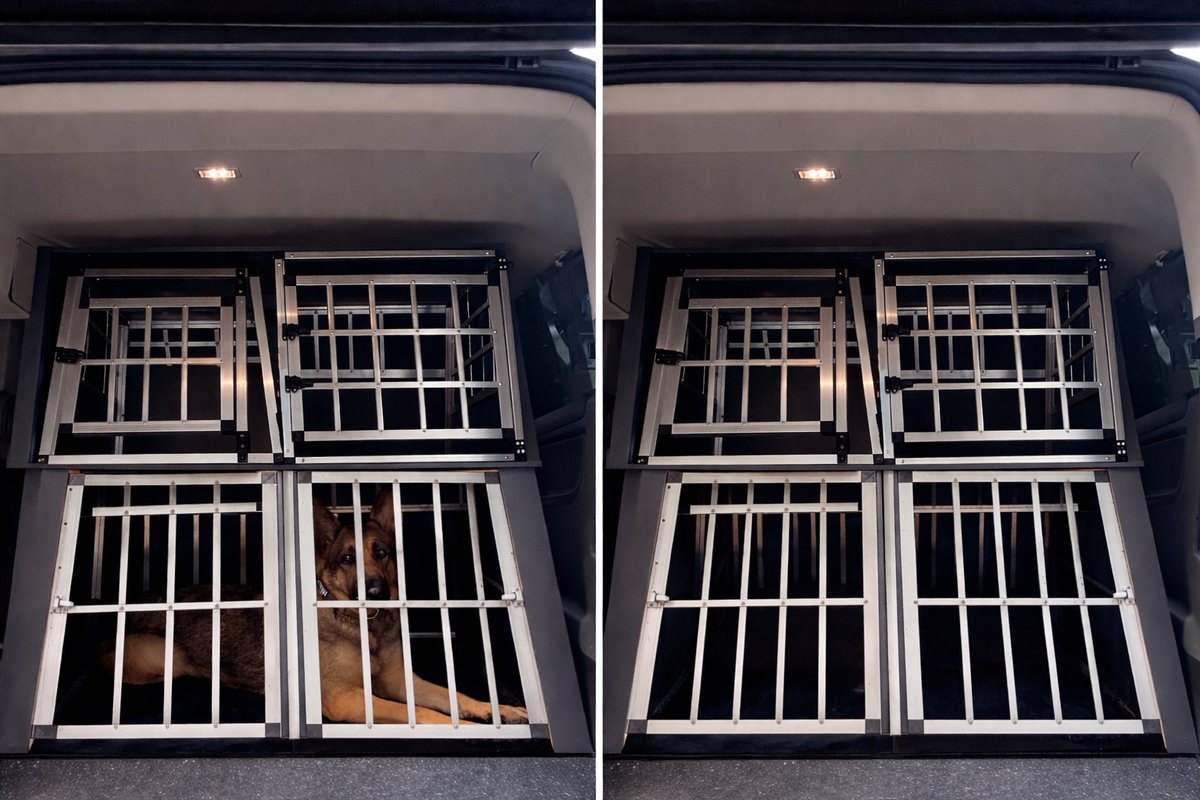 The vehicle allows pets to travel in secure spaces that support safer movement control and a calmer journey. This is particularly important for dogs that travel better with their own defined space, as well as for longer-distance transport where comfort and consistency really matter.