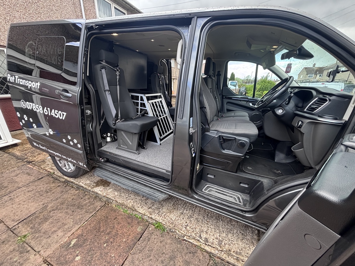 The Ford Tourneo Custom gives us the space, access and flexible interior layout needed for dedicated pet taxi work. It allows us to transport pets more safely than a standard passenger car, with a setup that supports secure containment, practical loading and unloading, and a calmer overall travel environment.